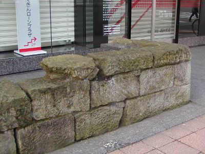 福井銀行改築の際に出てきたらしい北ノ庄城の石垣。現在も地下駐車場の工事と共に発掘調査が行われている。