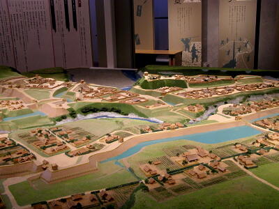 鉢形城歴史館にある鉢形城の模型。深沢川の方から。