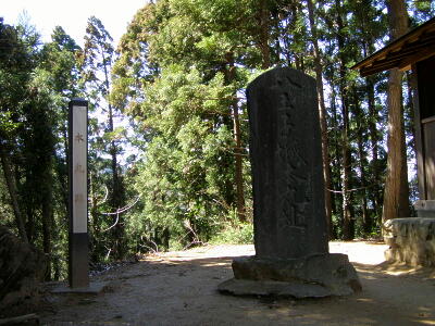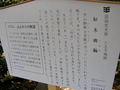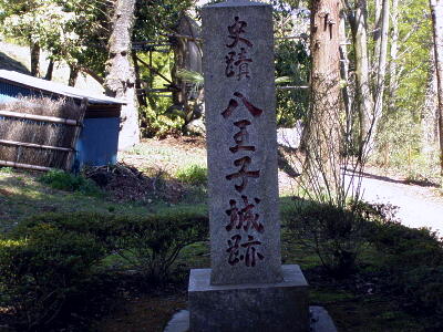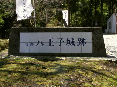駐車場に新しく建てられた「日本百名城」の入った八王子城跡の碑。