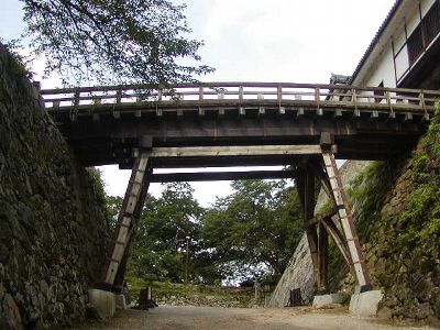 天秤櫓と廊下橋全景。長浜城から移築されたと伝えられる。