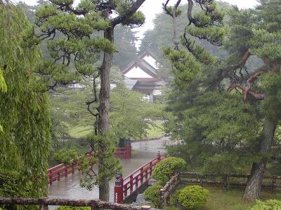 二の丸に渡る鷹丘橋。武徳殿(明治44年築造)も見える。