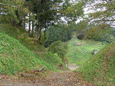 二の郭を進んでいくと堀切みたいな地形に。