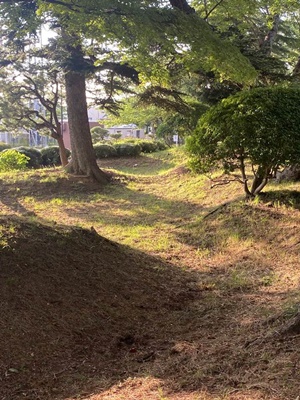 その北側には駐車場があって謎の空き地があったが、これが空堀の跡かなあ?発掘前がわからないし、特に何の掲示もないから違うか。