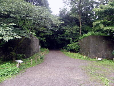 本丸鉄門。「創建は明らかでないが、寛永の大火(一六三一)以降、二の丸から本丸に入る正門となった。鉄板を貼った扉がつけられていたことからこの名前が付いたといわれている。渡し櫓が乗った重厚なもんで、本丸の防御にあたっていた。」