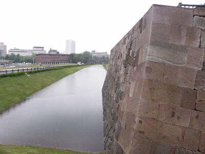 いもり堀と本丸南面石垣。