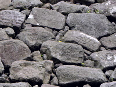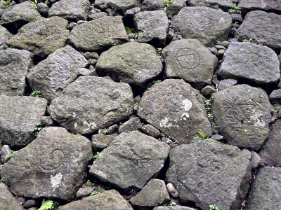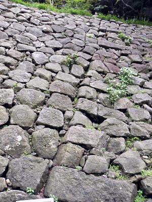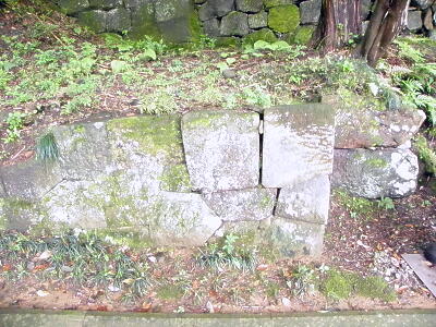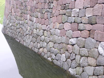 鯉喉櫓台石垣。灰色っぽいのが現存。