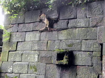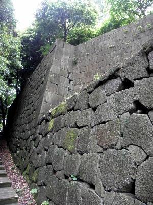 いもり坂(坂自体は明治以降に造られたもの)沿いの石垣。