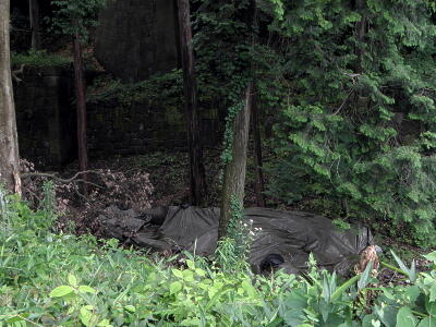 紅葉橋跡石垣。古図によるとこの上には番所があった?