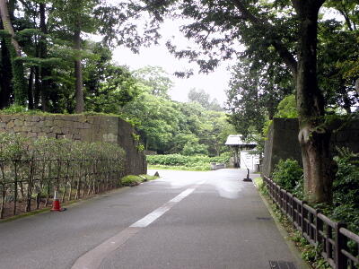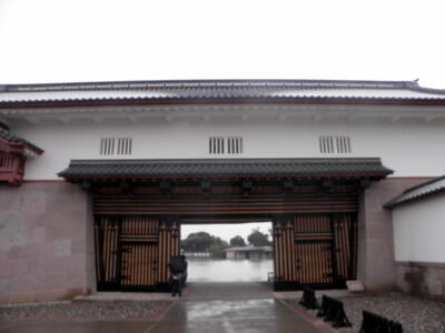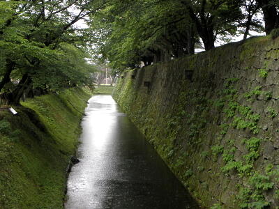 5年ぶりの金沢城。天気は雨。今回は黒門口から。黒門横の大手堀。
