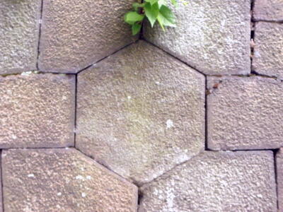 土橋門跡石垣の亀甲石。