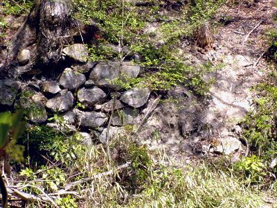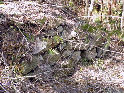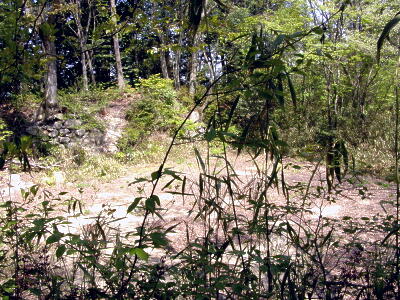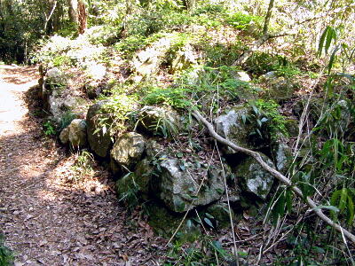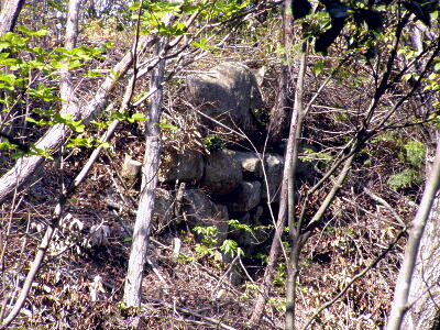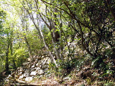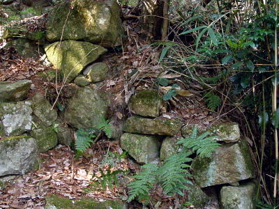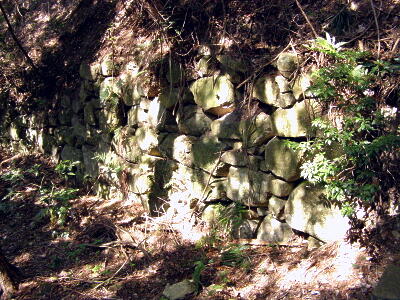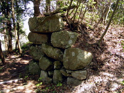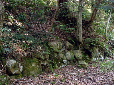 山頂から佐々木城址の碑の方向に戻る。途中の三国の間(三国丸)の石垣。