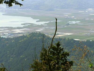 山頂から琵琶湖。手前の山は安土山。