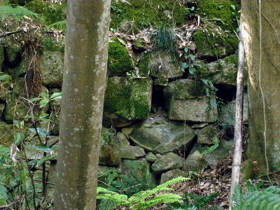 三国の間から突き出した地形の突端近くの石垣。ここから三国が見渡せるという意味だろうか?>三国の間