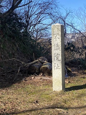不識院址の碑。輝虎は通常「謙信」としか呼ばれてないが、法号としては「不識庵謙信」だったとのこと。実際は今毘沙門堂が建ってるところに不識院があったのではなかろうか?(毘沙門堂は一段上にあったらしい)