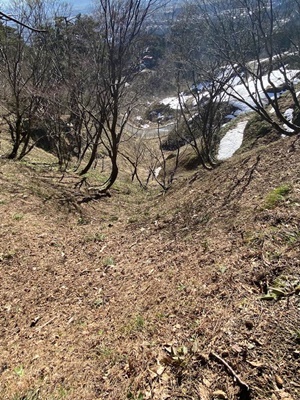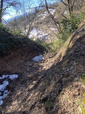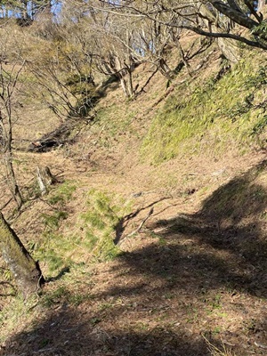 さっき登ってくる途中にあった空堀はここから続いていた。