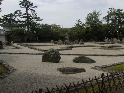 本丸跡は枯山水風の庭園に。コンセプト不明。