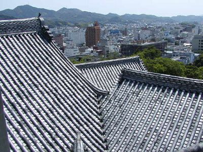 複雑に入り組んだ天守と本丸正殿の屋根。