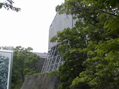 竹之丸から見上げると飯田丸の石垣の向こうに大天守。