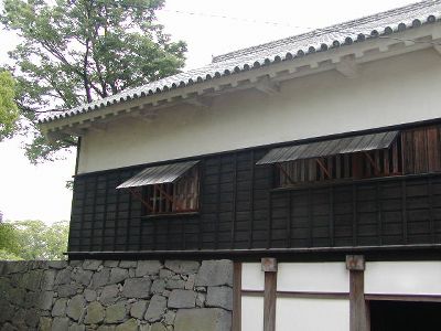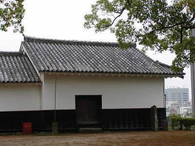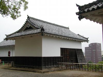 坪井川にかかる行幸橋を渡ると最初に見えるのがこの馬具櫓(復元)。