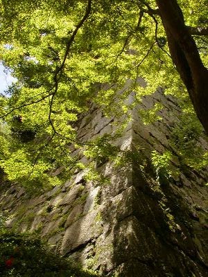 この三の丸東石垣が途中から色が違うのは最近組み直されたため。