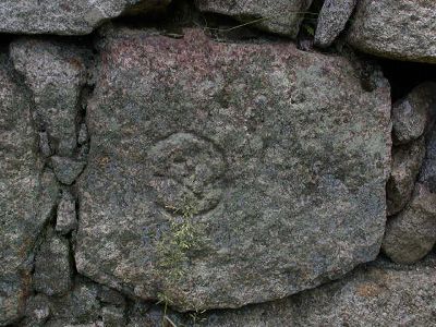 ○とかが彫ってある。たいていどこの地方から持ち込まれた石かを彫ったらしい。
