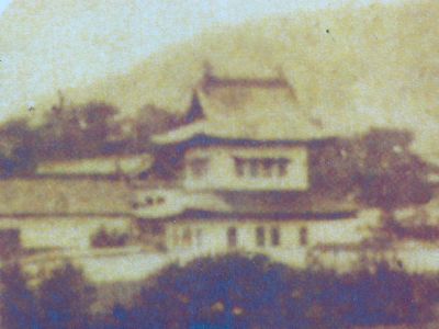 古写真に残る二重太鼓櫓。これには鯱が乗ってるなあ。