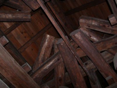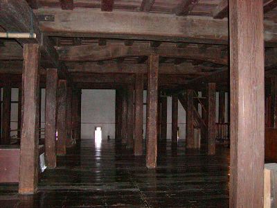 渡櫓を通って大天守に移る。一階は柱だらけ。