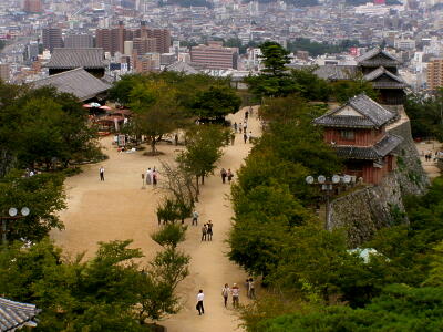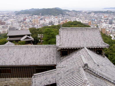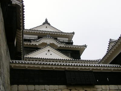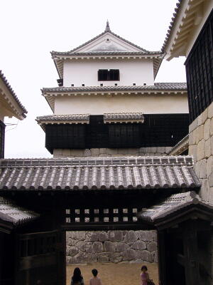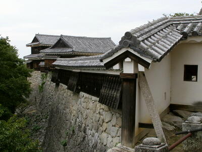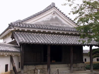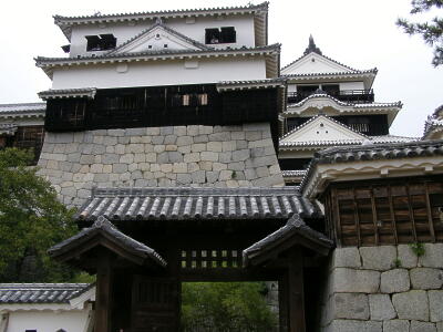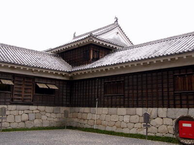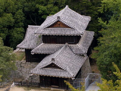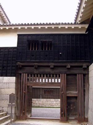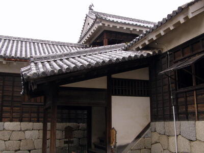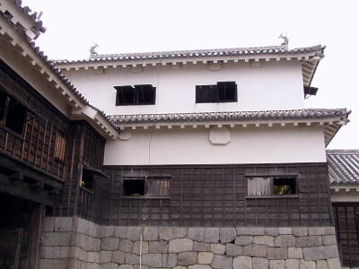 正木城から移築したと言われる乾櫓と再建の乾門、乾門東続櫓。