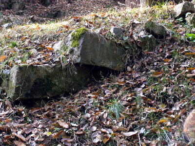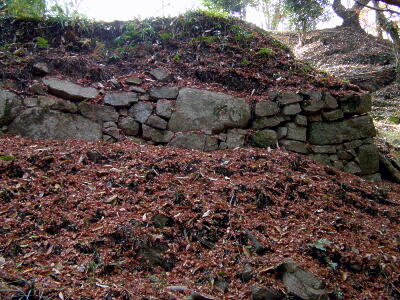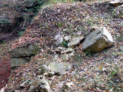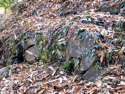 本丸西側斜面の石垣跡。
