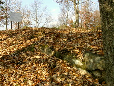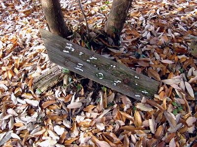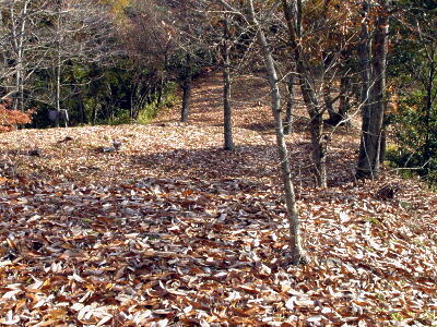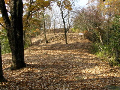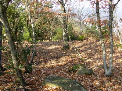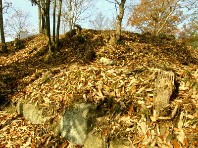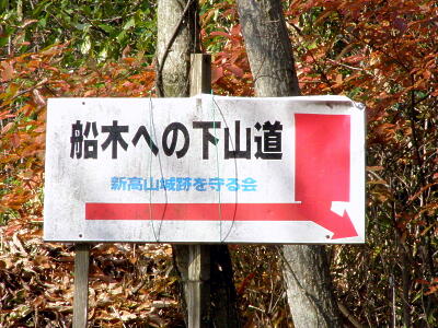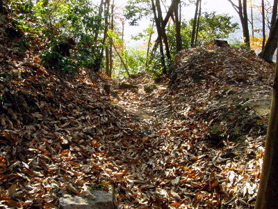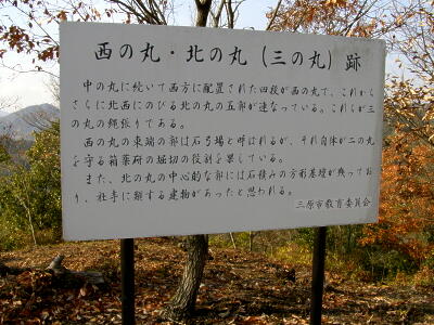 三の丸へは中の丸虎口手前の分岐で左に行くか、中の丸から「船木への下山道」の指示に従って細い道を行くと行ける。