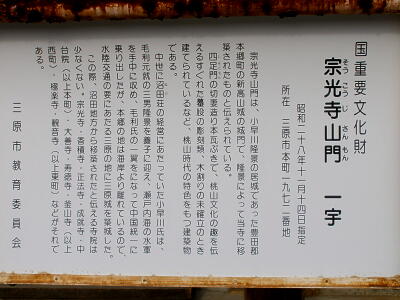 三原市本町の宗光寺(三原駅から約800m)に移築されている新高山城の大手門。