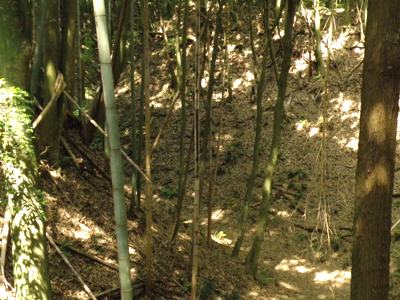 空堀を先へと進むが藪となってて歩きづらい。しかもスズメバチ?がいたので早々に退散。