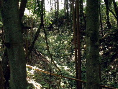五の郭の南側の空堀は藪化。
