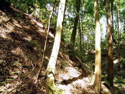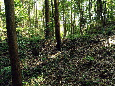変形武者走り。この土塁上に堀があるらしい。