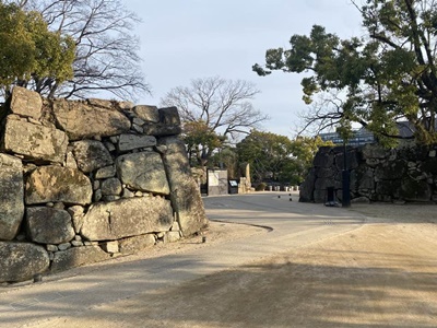 太鼓櫓跡石垣。内下馬門と太鼓櫓は復元が計画されているらしい。