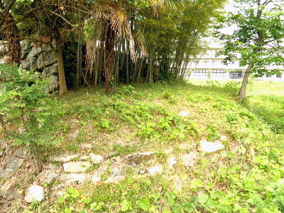 歩いて行くと荒地の向こうに天守台の石垣が。