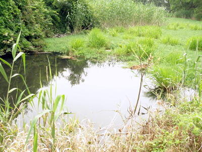 乙女が池の端。ウシガエルや巨大なカメがたくさん。
