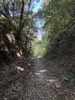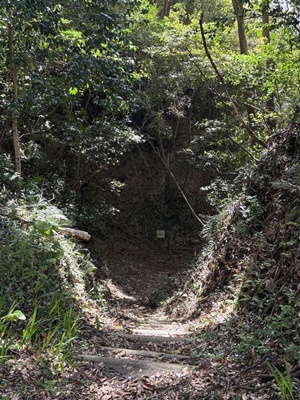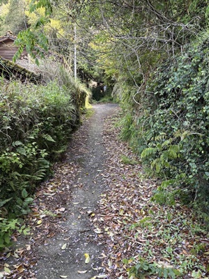 大手口へと進む。この辺は舗装されている。脇に民家もあるが、廃屋っぽかった。