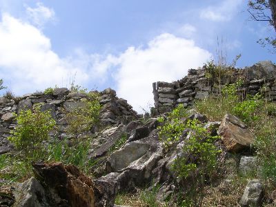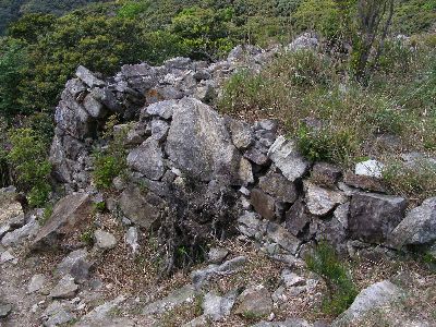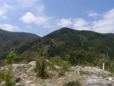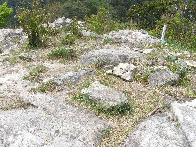 頂上付近。何もない。狭い。建物はあったのかどうか不明。(礎石に見えなくもないが・・・)