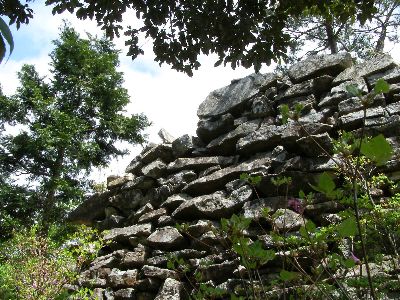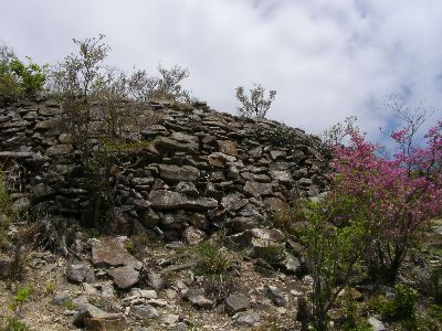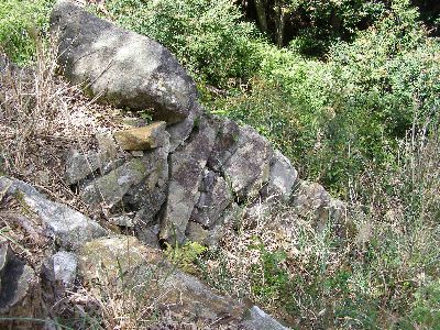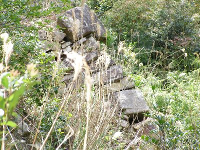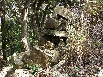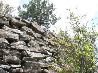 門の前の石積み。