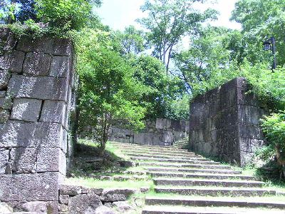 大手道石垣。こちら側の上り口はまだ整備の途中。