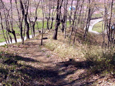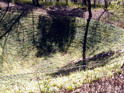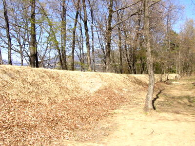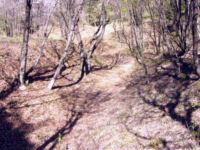 行きとは違う道をたどって帯曲輪に戻る。またすり鉢状の穴。