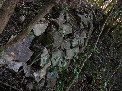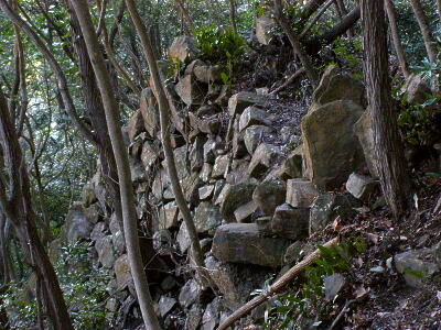 登り石垣。二本あるうちの西側の方。こちら側がよく残っているし、見やすい。