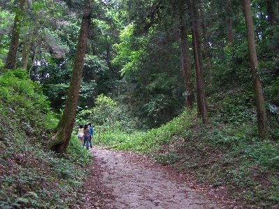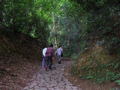 切通に敷かれた石畳。雨の日は滑りそう。