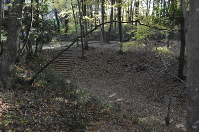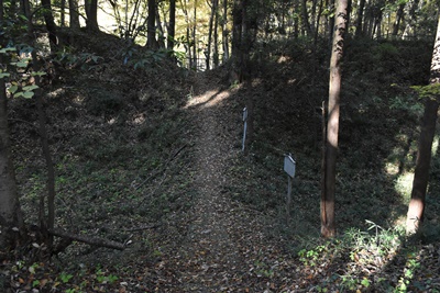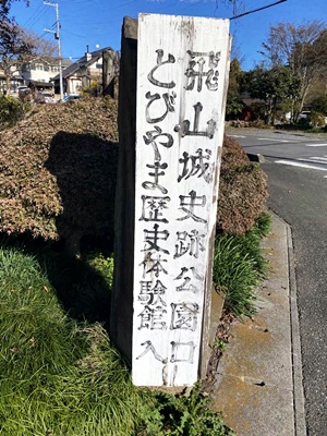 ようやく「飛山城史跡公園入口」と書かれた標柱にたどりつく。