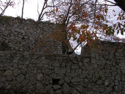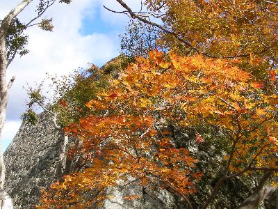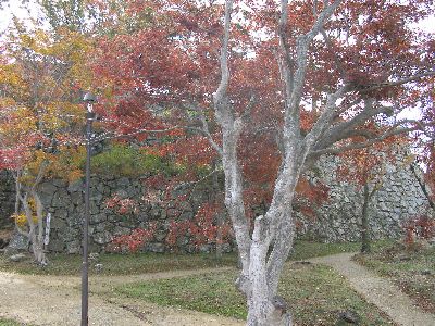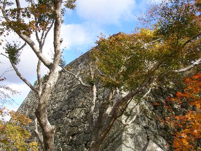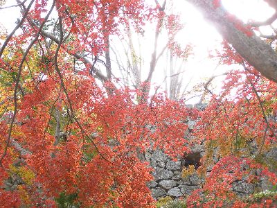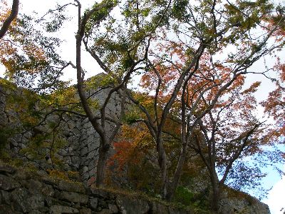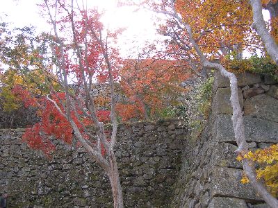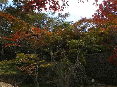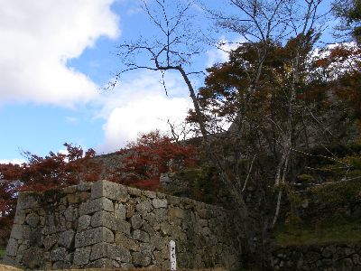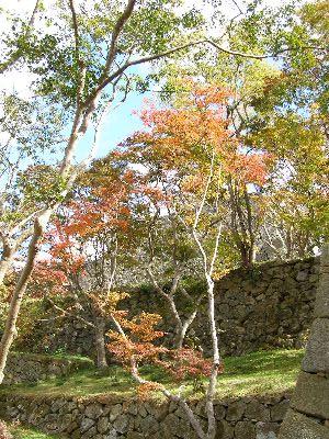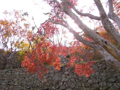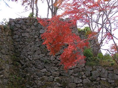腰巻櫓跡石垣と紅葉。