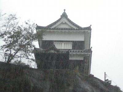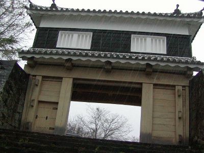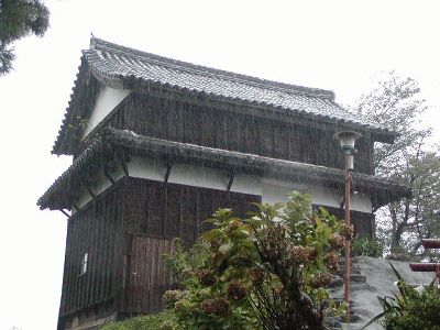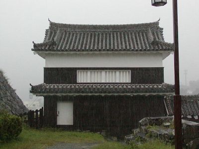 JR臼杵駅から海側に数分、卯寅(うとの)稲荷の参道を登って臼杵公園に。凄い雨。途中に卯寅口脇櫓があった。