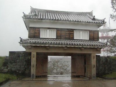 細長い臼杵公園を縦断、西側の端に到着。まだまだ「新しい」という印象を与える大門櫓。