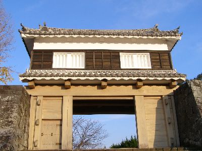 古橋門。こちらが現在の臼杵城跡入口のようだ。ただ今も周りの発掘調査および整備工事中。