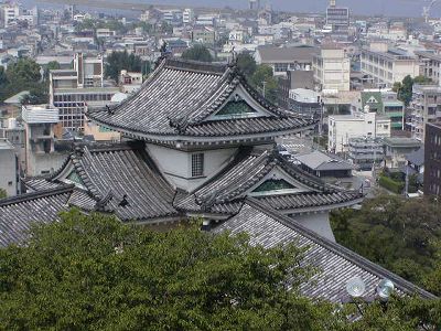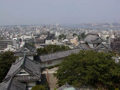 大天守三階から天守郭、遠くに和歌山港。